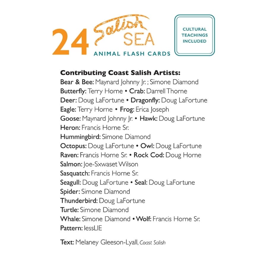Discover 24 beautifully designed Flash Cards featuring inspiring cultural teachings and artwork by 11 Coast Salish artists. Both educational and visually engaging, these cards make learning fun while celebrating Coast Salish culture and traditions.