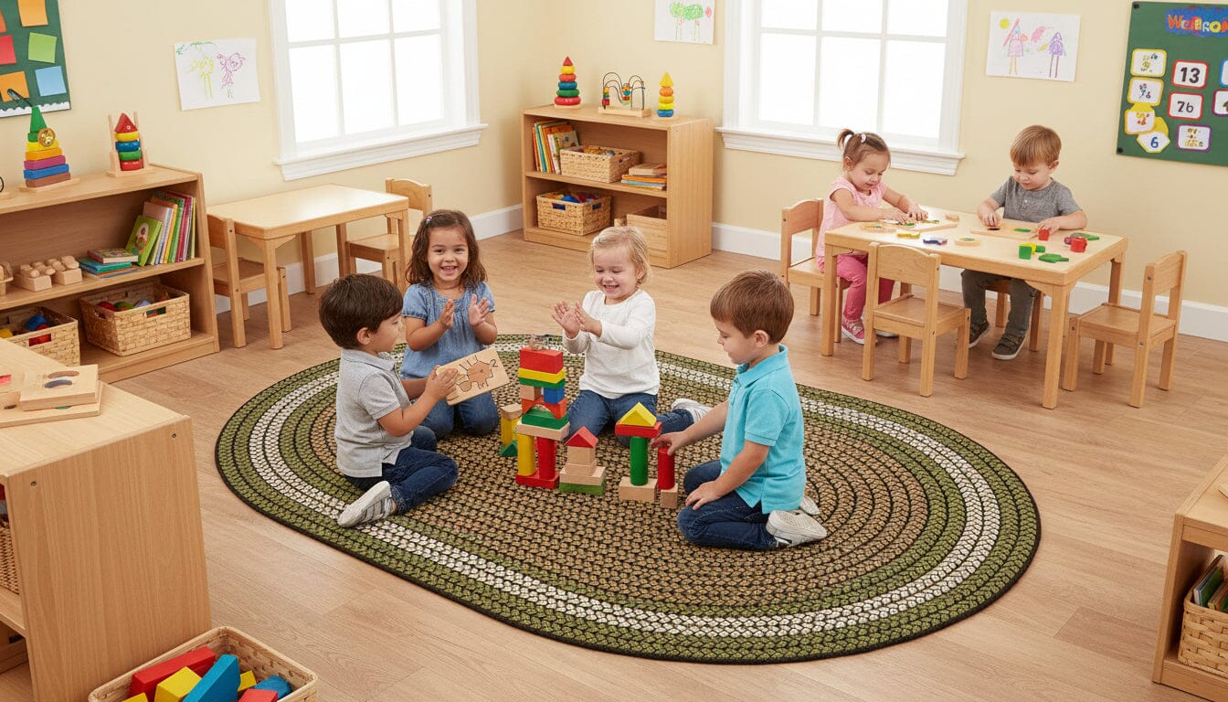 Premium soft carpet with a classic braided design in natural colours. Ideal for a dramatic play area or a literacy corner. Provides a cozy and inviting space for children to learn and play.