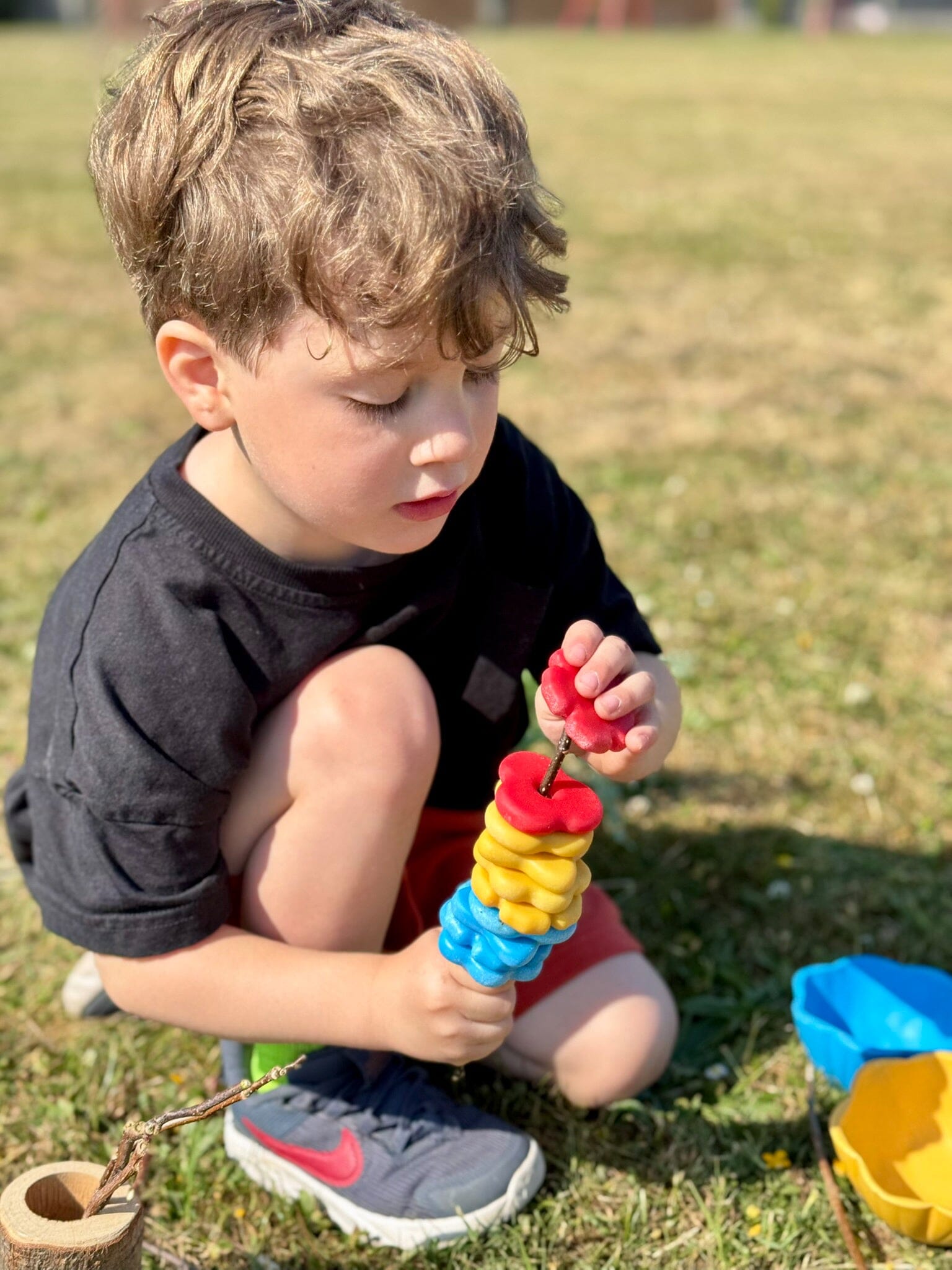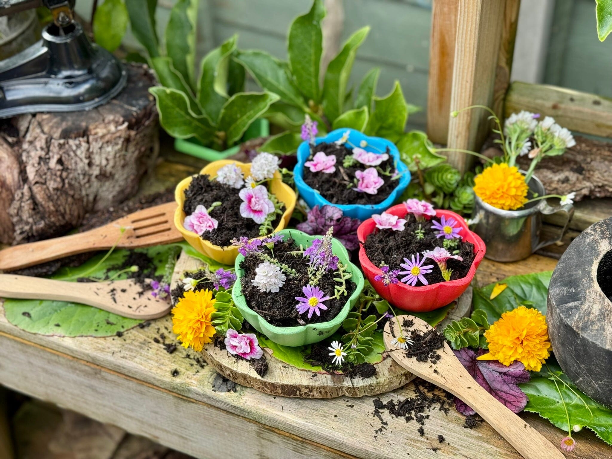 Brighten up learning and play with this set of 4 colorful flower bowls and 16 matching flower stones, perfect for counting, sorting, matching, threading activities, and sand and water play.
