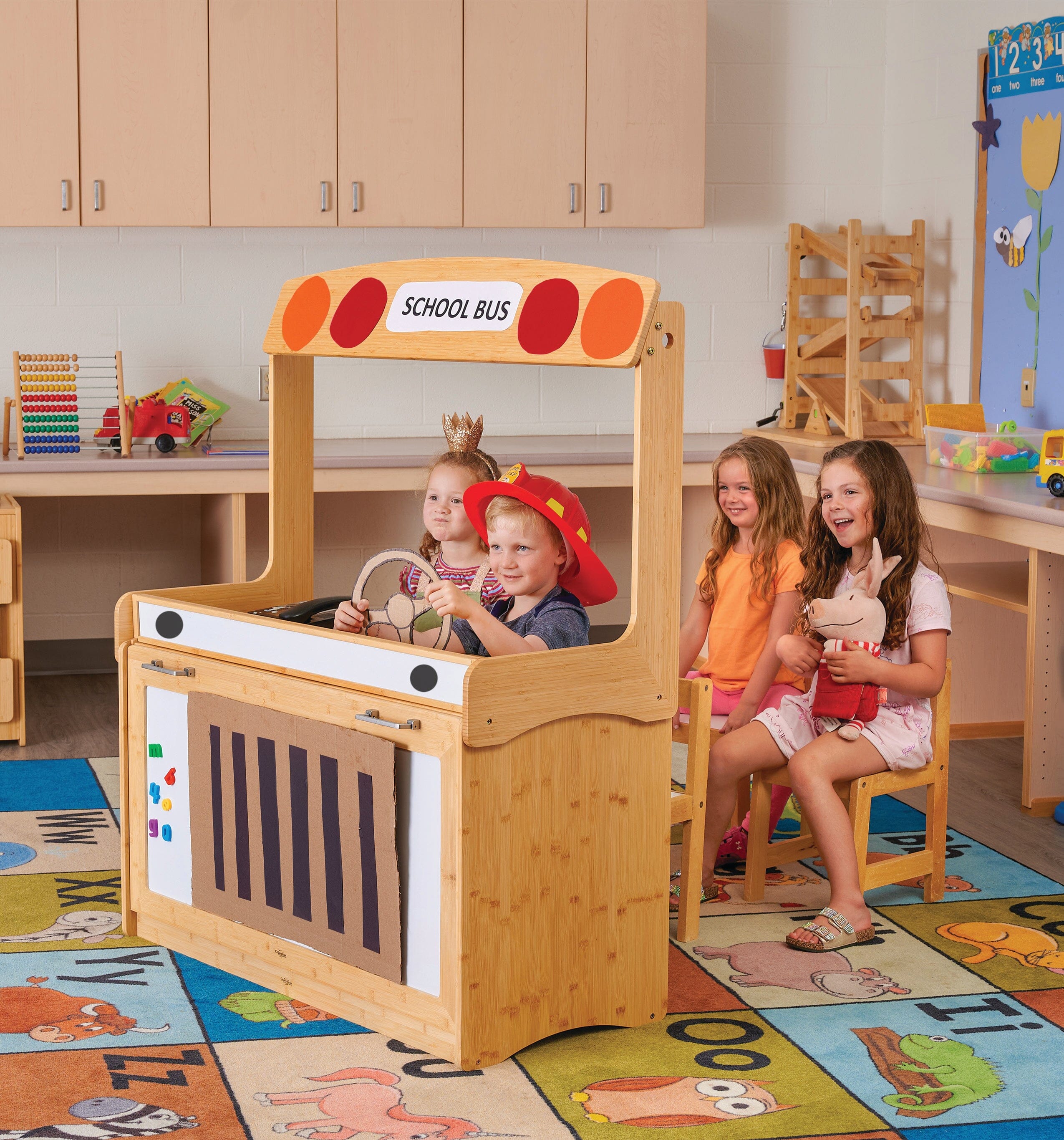 This versatile play unit is ideal for busy childcare and early learning settings, supporting imaginative, open-ended play while keeping materials organized and accessible. Prompts creative play through easy transformations: puppet theatre, market stall and more.