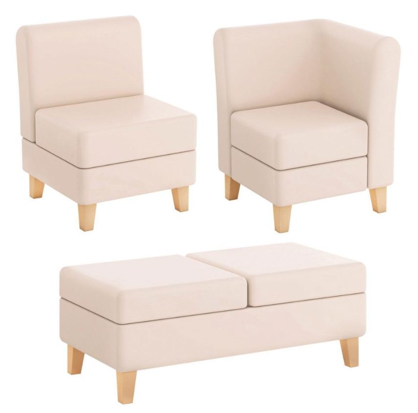 Set of 3 includes an Ottoman, a Lounge Chair, and a Corner Couch.