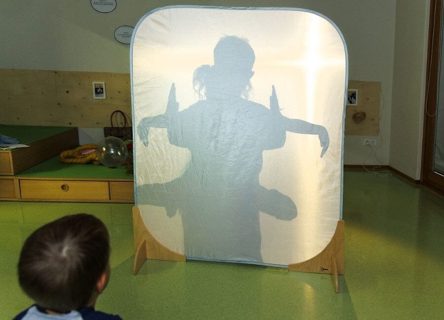 This large pop-up screen combines shadow play and green screen in one. Using light and simple objects, children can create shadow images, tell stories, and explore creativity.